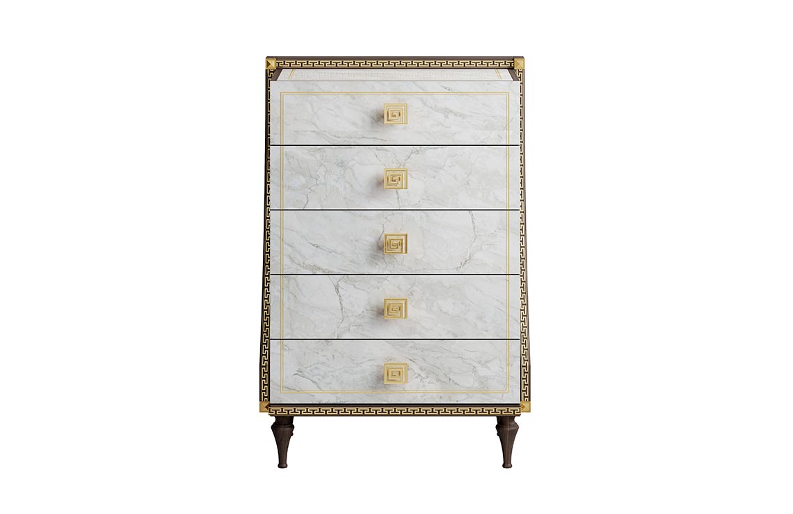 Il settimino Romantica unisce eleganza e praticità, offrendo ampio spazio di stoccaggio con i suoi 7 capienti cassetti. Le linee pulite sono sottolineate dal fianco effetto legno noce che avvolge la cassa interna in marmo di Carrara lucido in un caldo abbraccio creando un abbinamento cromatico inedito. Un elemento distintivo e funzionale che esprime lo spirito dei mobili classici italiani Arredoclassic.